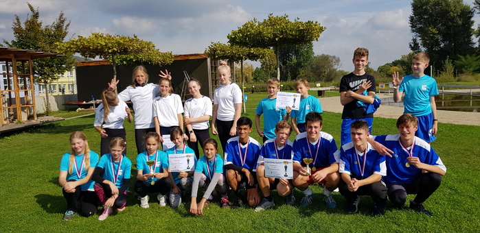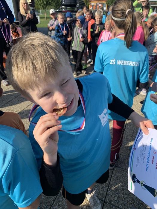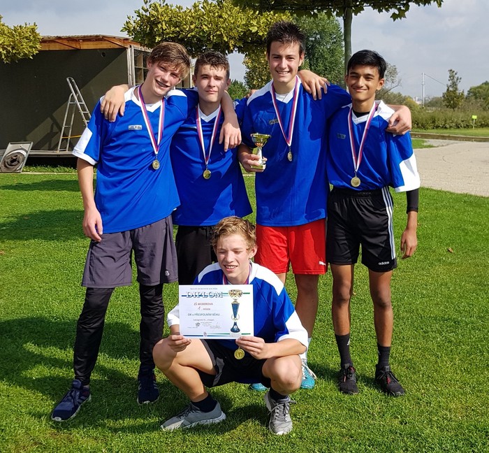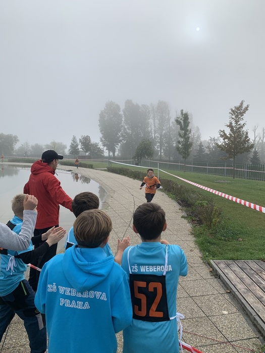 Dvě zlaté medaile a dva postupy do pražského kola. To se již dlouho v přespolním běhu naší škole nepodařilo. Letos o účast v pražském finále úspěšně zabojovala nastupující generace dívek z 6. – 7. tříd a končící úspěšní sportovci z devátých tříd. Dívky vybojovaly zlato i s nejlepším výsledkem ze všech družstev s nejnižším číslem pořadí - 16( 1, 4,5,6). A kdo pomohl k vítězství? Alžběta Doležalová, Linda Wollnerová, Sofie Fraňková, Julie Špačková a Anežka Brožová. Alžběta Doležalová byla jako naše třetí běžkyně vyhlášena nejrychlejší závodnicí této kategorie. Parádní výkon a výsledek. Gratulace pro všechny dívky.