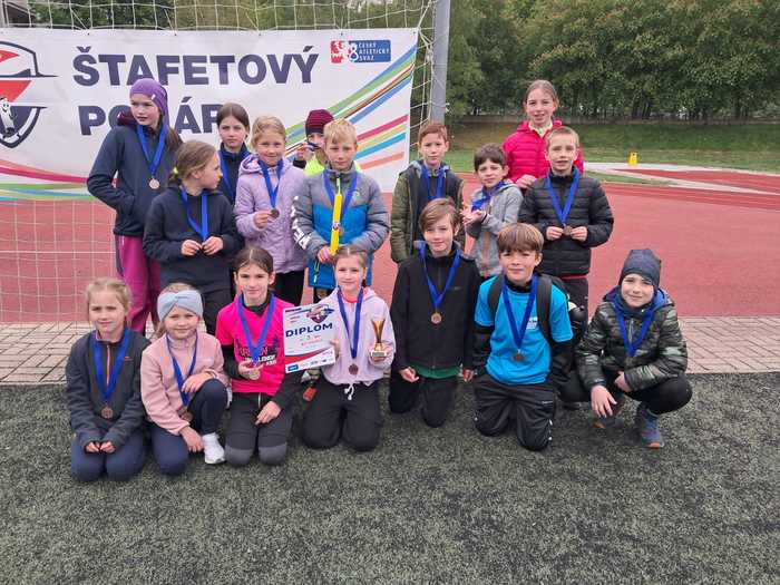 Gratulujeme žákům 1. stupně za vybojování 3. místa ve štafetovém běhu a k postupu do krajského kola ![]()
