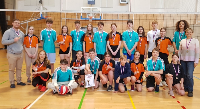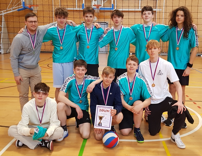 Na začátku dubna se chlapci 8. - 9. tříd zúčastnili turnaje v odbíjené. I když se turnaje zúčastnily pouze 4 školy, všichni si dobře zahráli. Chlapci vybojovali bronzové medaile, když na 3 sety porazili ZŠ V Remízku. Děkujeme všem za vzornou reprezentaci školy.